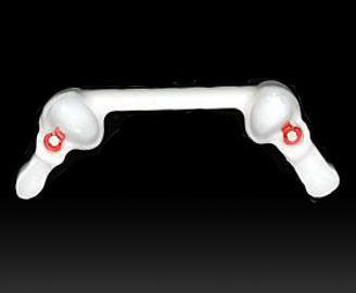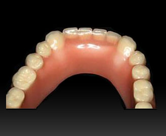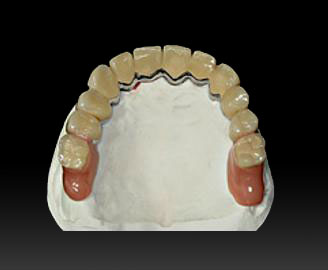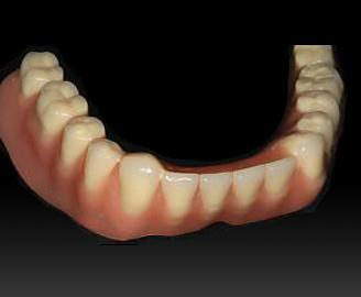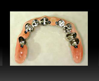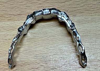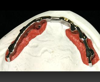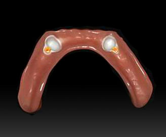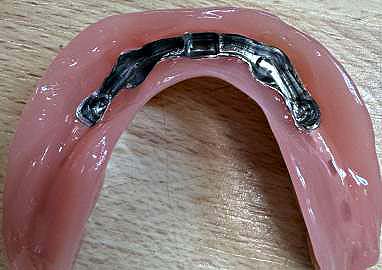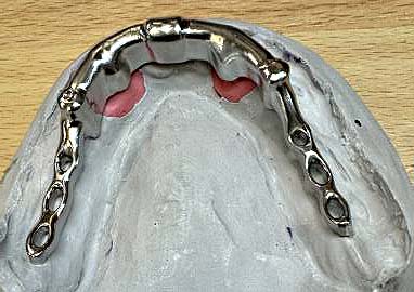 fertige UK-Prothese auf frontalem Steg auf 2 Implantaten (Unterseite) (4/4)