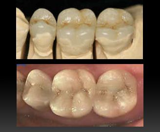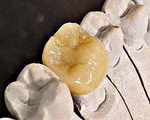 - für Molarenkronen, wenn aus anatomischen Gründen oder wegen eingetretener Vorschädigung (Bruxismus) nur ein geringer Abtrag durch Präparation möglich ist,