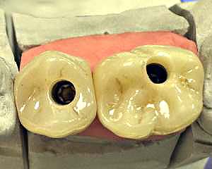 - zur Kostenersparnis gegenüber Kronen mit geschichteter Verblendung.